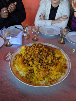 Lunch (L'ghdda) is the heaviest meal of the day in Morocco, and is often some sort of salad (I’ve been served cucumber salad, green salad, fruit salad and pasta salad), followed by a main course (often a tajine or some sort of dish featuring meat) eaten with you guessed it, more bread(!), followed by fresh fruit as dessert.